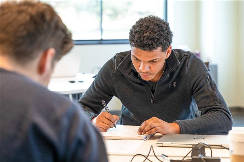 Jordan working on a group project in class at Golisano Institute