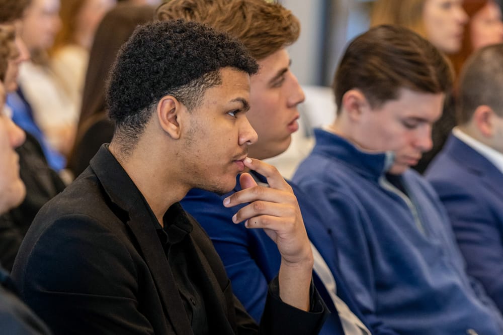 Jordan Kujawski ’25 (business & entrepreneurship) in the audience during Speaking from Experience