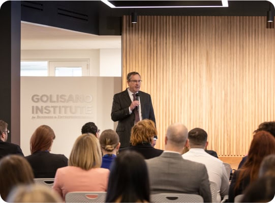 At Golisano Institute for Business & Entrepreneurship, our strategic, rigorous, and highly connected academic experience gets students ready for business success in just 24 months—from setting goals to launching careers.